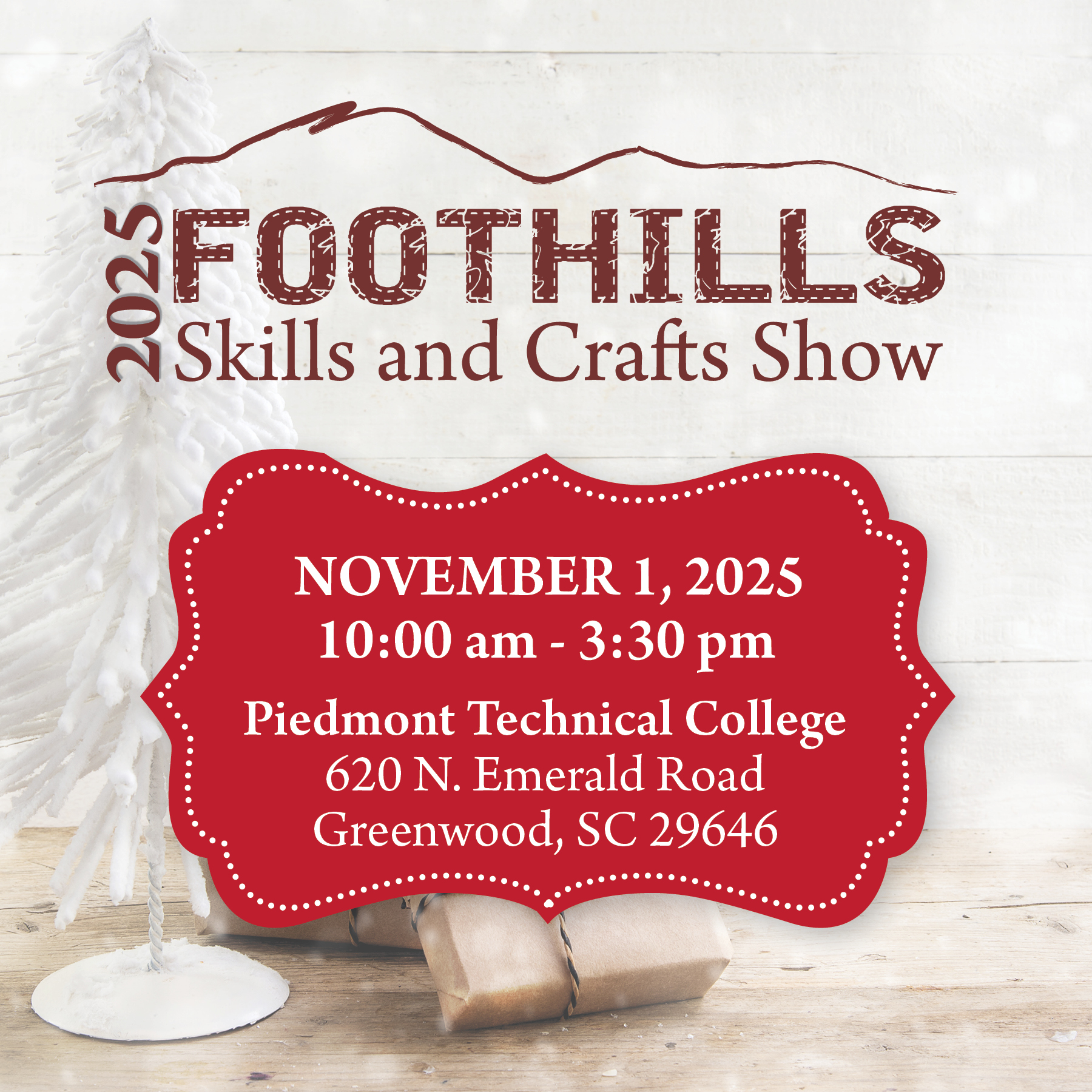 This year's event will be Saturday, November 1, 2025 from 10 a.m. - 3:30 p.m. in the breezeways on the Piedmont Technical College Lex Walters Campus-Greenwood.