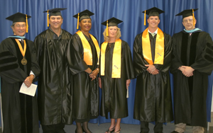 Four Greenwood County students were honored for maintaining a 4.0 grade point average. Students were recognized by PTC area commission members. Pictured are, from left, Y.J. Ahn, area commission; Bruce E. Fifer, building construction technology; Valerie Fennell, mechatronics; Harla Anderson, business; Brandon Patterson, building construction technology; and Dr. George Cone, area commission.