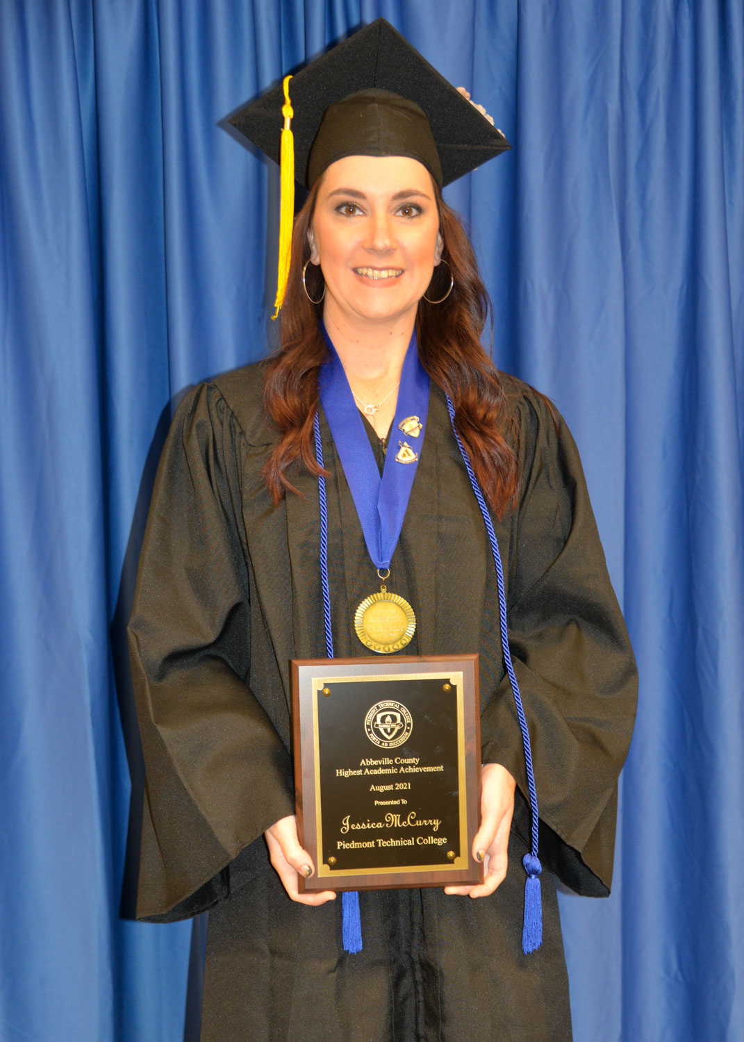 Jessica McCurry, who earned a diploma in applied science, major in surgical technology, was the honoree for Abbeville County. She graduated magna cum laude and also served as one of the three student graduation speakers.