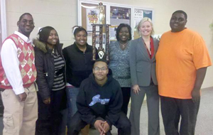 Photo Caption: High school students from Laurens, Clinton and Newberry will be representing Piedmont Technical College at the annual regional Scholars’ Bowl in Atlanta April 16 after taking the state championship recently at Horry-Georgetown Technical College. Team members are, from left, Rico Saxon, Upward Bound LENS administrative specialist; Shikeria Henderson, Tuquana Dendy, Kenneth Bates and Latisha Dewalt, all from Newberry High School; Robyn Finley, Upward Bound LENS director; and Steven McDuffie from Clinton High School. Not pictured: Justin Davenport from Laurens District 55 High School.